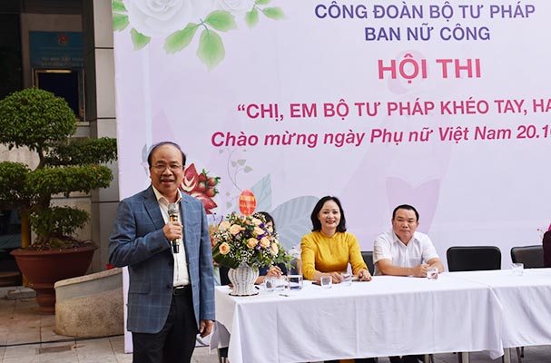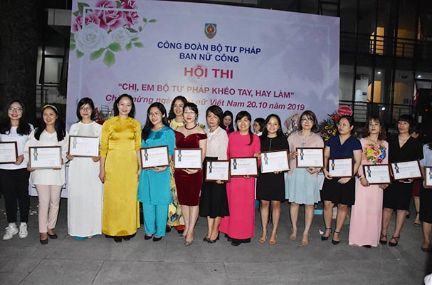 Nhân dịp kỷ niệm 89 năm Ngày phụ nữ Việt Nam (20/10/1930 – 20/10/2019), được sự nhất trí của Đảng ủy, Lãnh đạo Bộ, chiều 18/10, Công đoàn Bộ Tư pháp đã tổ chức Hội thi “Chị em Tư pháp khéo tay, hay làm”. Hội thi nhằm tiếp tục thực hiện tốt các phong trào thi đua “Giỏi việc nước, đảm việc nhà”, “Phụ nữ tích cực học tập, lao động sáng tạo, xây dựng gia đình hạnh phúc”.