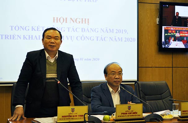Sáng 20/01, Đảng ủy Bộ Tư pháp tổ chức Hội nghị tổng kết công tác đảng năm 2019, triển khai nhiệm vụ công tác năm 2020 với sự đồng chủ trì của Bí thư Đảng ủy Bộ - Thứ trưởng Phan Chí Hiếu, Phó Bí thư thường trực Nguyễn Kim Tinh và Phó Bí thư – Thứ trưởng Nguyễn Khánh Ngọc.