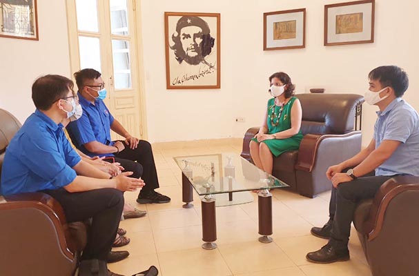 Sau lễ trao tặng, Đại sứ Cu-Ba Lianys Torres Rivera đã có buổi làm việc với bà Nguyễn Minh Phương, Phó Vụ trưởng Vụ Hợp tác quốc tế và đại diện thanh niên Vụ Hợp tác quốc tế. Bà Nguyễn Minh Phương chia sẻ, món quà tuy giá trị nhỏ nhưng là tâm huyết, tình cảm chân thành của các bạn thanh niên cũng như toàn thể cán bộ, công chức Vụ Hợp tác quốc tế, Bộ Tư pháp Việt Nam gửi đến bạn bè Cu-Ba. Đại sứ Cu-Ba Lianys Torres Rivera đã gửi lời cảm ơn chân thành đến Chi đoàn Vụ HTQT nói riêng và các cán bộ, công chức Vụ HTQT Bộ Tư pháp Việt Nam nói chung. Trong bối cảnh dịch bệnh Covid-19 đang tiếp tục diễn biến phức tạp và việc nhập khẩu các trang thiết bị, vật tư y tế gặp nhiều khó khăn, thì sự hỗ trợ của người anh em Việt Nam đã thể hiện rõ tình đoàn kết, tấm lòng vô giá của nhân dân Việt Nam luôn dành cho nhân dân Cu-Ba. Chia sẻ thêm về tình hình dịch bệnh Covid-19 tại Cu-Ba, Đại sứ Lianys Torres Rivera cho biết đến thời điểm hiện tại, Cu-Ba đã có 3.806 trường hợp nhiễm Covid 19 và 92 trường hợp tử vong. Thủ đô La Havana đang tạm dừng cung cấp dịch vụ giao thông công cộng và đóng cửa hầu hết các cửa hàng. Chính quyền yêu cầu người dân giãn cách xã hội và buộc phải sử dụng khẩu trang khi ra ngoài.