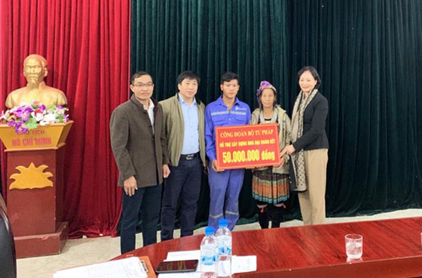 Công đoàn Bộ Tư pháp cũng trao tặng 1 nhà đại đoàn kết trị giá 50 triệu đồng cho gia đình chính sách tại xã Sin Suối Hồ
