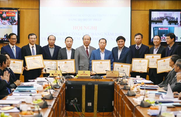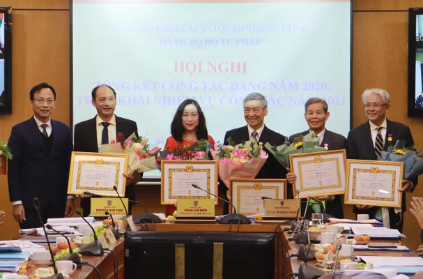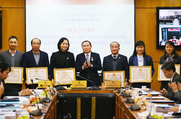 Nhân dịp này, Hội nghị đã trao tặng Huy hiệu 50 năm tuổi Đảng cho 2 đảng viên; Huy hiệu 30 năm tuổi Đảng cho 3 đảng viên; tặng Kỷ niệm chương vì sự nghiệp kiểm tra của Đảng cho 4 đồng chí. Trao tặng Bằng khen của Bộ trưởng Bộ Tư pháp cho 3 tập thể, 5 cá nhân có thành tích xuất sắc trong công tác tổ chức phục vụ Đại hội Đảng bộ Bộ Tư pháp lần thứ XI. Trao tặng Bằng khen của Bộ trưởng cho 6 tập thể, 9 cá nhân có thành tích xuất sắc trong đợt thi đua theo chuyên đề lập thành tích chào mừng Đại hội Đảng các cấp tiến tới Đại hội XIII của Đảng; Giấy khen của Đảng ủy Bộ Tư pháp cho các tổ chức Đảng, Đảng viên có thành tích xuất sắc trong công tác xây dựng tổ chức Đảng.