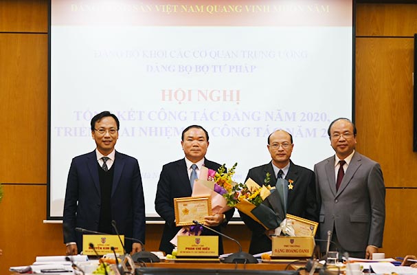 Sáng nay (20/1), Đảng bộ Bộ Tư pháp đã tổ chức Hội nghị trực tuyến tổng kết công tác Đảng năm 2020, triển khai nhiệm vụ công tác năm 2021 dưới sự chủ trì của Bí thư Đảng ủy, Thứ trưởng Phan Chí Hiếu; Phó Bí thư Đảng ủy, Thứ trưởng Đặng Hoàng Oanh; Phó Bí thư thường trực Đảng ủy Nguyễn Kim Tinh.