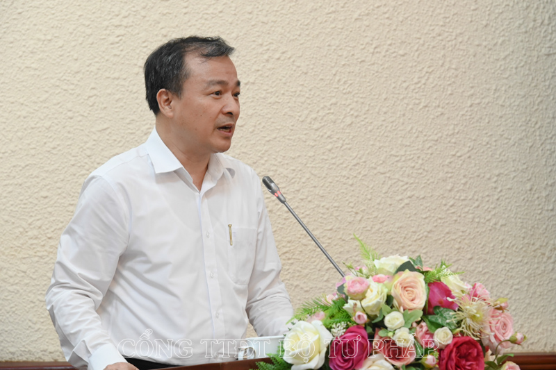 Đồng chí Nguyễn Khánh Ngọc, Phó Bí thư Ban Cán sự Đảng, Thứ trưởng Bộ Tư pháp phát biểu tại Hội nghị.