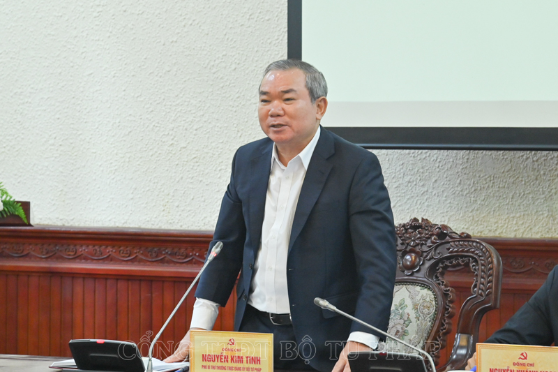 Thứ trưởng nhấn mạnh công tác tư pháp có vai trò quan trọng trong việc thực hiện hiệu quả Nghị quyết số 35-NQ/TW, vì vậy cần tiếp tục chú trọng công tác xây dựng, hoàn thiện hệ thống pháp luật gắn với việc thể chế hoá, thực hiện các Nghị quyết, Kết luận, Chỉ thị của Đảng. Bên cạnh đó, các cơ quan báo chí, truyền thông của Bộ cũng cần tăng cường các thông tin tích cực, đấu tranh phản bác, ngăn chặn hiệu quả thông tin xấu độc; đồng thời tăng cường công tác đào tạo, bồi dưỡng tư tưởng, lý luận chính trị cho cán bộ, đảng viên.