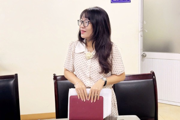 Đồng chí Bùi Thị Huyền, Chi ủy viên Chi bộ, Trưởng ban Ban Biên tập và Thư ký Tòa soạn Tạp chí trao đổi tại Hội nghị.