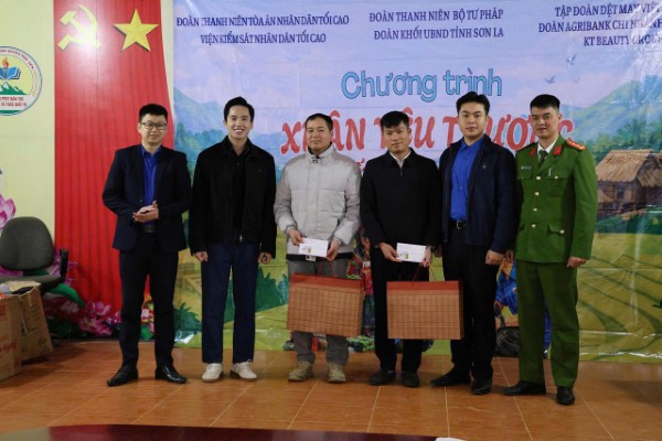 Với chủ đề “Xuân yêu thương - Tết ấm vùng cao”, vừa qua, Đoàn Thanh niên Bộ Tư pháp, Đoàn khối UBND tỉnh Sơn La phối hợp với Đoàn Thanh niên các cơ quan: Tòa án nhân dân tối cao, Viện Kiểm sát nhân dân tối cao, Trại giam Yên Hạ; Tập đoàn Dệt may Việt Nam và KT Beauty Medical Centre tổ chức Chương trình thăm hỏi, trao tặng quà, xóa nhà tạm cho đồng bào và trao học bổng cho học sinh có hoàn cảnh khó khăn tại xã Suối Tọ, tỉnh Sơn La.