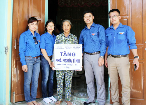 Đặc biệt, nhờ sự hỗ trợ của Đoàn Thanh niên Ngân hàng BIDV (Chi nhánh Hoàn Kiếm, Hà Nội) cùng sự phối hợp tham gia của Chi đoàn Sở Tư pháp, Cục Thi hành án dân sự tỉnh Quảng Bình, Đoàn Trường Trung cấp luật Đồng Hới, Đoàn Trường Trung cấp luật Thái Nguyên, đoàn tình nguyện đã trao tặng nhà tình nghĩa cho gia đình bà Nguyễn Thị Mai – một gia đình có hoàn cảnh đặc biệt khó khăn.