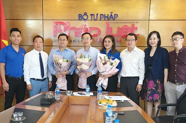 Tham gia chương trình giao lưu với độc giả là ông Nguyễn Quốc Huy - Phó Trưởng Ban Tuyên giáo, Trung ương Đoàn TNCS Hồ Chí Minh; ông Phan Hồng Nguyên – Phó Vụ trưởng Vụ Phổ biến, giáo dục pháp luật, Bộ Tư pháp và bạn Nguyễn Thị Phương Thanh – Đoàn viên, thanh niên Tổng cục thi hành án dân sự. TS. Đào Văn Hội - Bí thư Đảng ủy, Tổng Biên tập Báo Pháp luật Việt Nam và ông Hồ Quang Huy - Giám đốc Nhà xuất bản Tư pháp, Bí thư Đoàn TNCS Hồ Chí Minh Bộ Tư pháp tặng hoa cho các khách mời tham dự giao lưu
