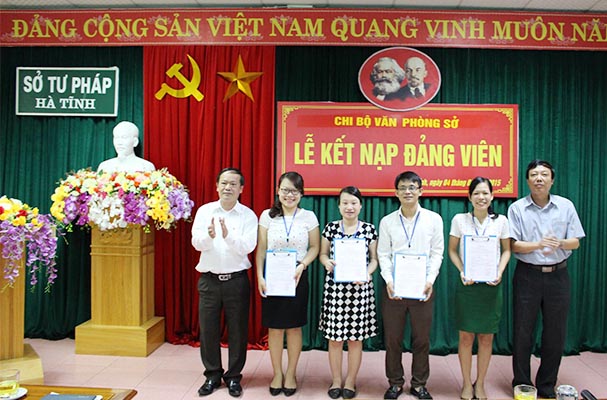 Thực hiện Kế hoạch công tác Đảng năm 2015, trong các ngày 03- 04/8/2015, được sự đồng ý của Đảng ủy Sở Tư pháp, các Chi bộ gồm Văn phòng Sở và Trung tâm Trợ giúp pháp lý Nhà nước tỉnh đã tổ chức Lễ kết nạp Đảng viên mới. Đại diện Đảng ủy và toàn thể Đảng viên hai Chi bộ đã tham dự.