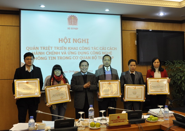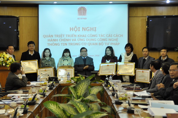 Nhân dịp này, Hội nghị đã công bố và trao các Quyết định thi đua, khen thưởng cho các tập thể, cá nhân có nhiều đóng góp vào vị trí đứng đầu của Bộ Tư pháp trong bảng xếp hạng kết quả xác định Chỉ số cải cách hành chính năm 2012 của các Bộ, cơ quan ngang Bộ.
