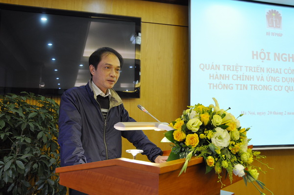 Hội nghị đã nghe Chánh Văn phòng Bộ Trần Tiến Dũng trình bày báo cáo tình hình công tác CCHC của Bộ Tư pháp và một số nhiệm vụ trong giai đoạn tới; Cục trưởng Cục CNTT Nguyễn Tiến Dũng báo cáo tình hình triển khai, hiệu quả ứng dụng CNTT trong hoạt động của cơ quan Bộ Tư pháp thời gian qua. Các đồng chí đều nhất trí bên cạnh những kết quả đạt được, các mặt công tác này đều có những tồn tại, hạn chế nhất định, cần tới sự quan tâm, phối hợp tích cực, chủ động của các đơn vị thuộc Bộ để đạt được hiệu quả cao hơn trong thời gian tới.