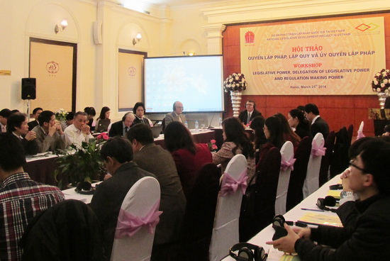Hội thảo đã dành thời gian để nghe các chuyên gia trong nước và quốc tế trình bày những quy định của pháp luật và chia sẻ quan điểm về quyền lập pháp, lập quy, uỷ quyền lập pháp cũng như kinh nghiệm của một số nước trong vấn đề này.