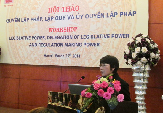 Mở đầu hội thảo, GS. TS Nguyễn Đăng Dung (Khoa Luật, Đại học Quốc gia Hà Nội) đã so sánh quy định của các Hiến pháp 1946, 1959, 1980 và 1992 về quyền lập pháp, lập quy và ủy quyền lập pháp, từ đó đưa ra nhận xét chung về quyền lập pháp, lập quy tại Việt Nam và khẳng định cần phải phân biệt quyền lập pháp và lập quy, cũng như phải quy định rõ về uỷ quyền lập pháp trong luật. Tiếp theo đó, TS. Dương Thanh Mai (nguyên Viện trưởng Viện Khoa học pháp lý - Bộ Tư pháp) đã trình bày về quyền lập pháp, lập quy và ủy quyền lập pháp theo Hiến pháp 2013, đồng thời đưa ra những khuyến nghị để có quy định rõ hơn về quyền lập pháp, lập quy và uỷ quyền lập pháp trong luật ban hành văn bản quy phạm pháp luật hợp nhất.
