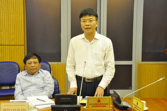 Cũng tại cuộc họp giao ban, Bộ Tư pháp đã tổ chức chia tay 2 Thứ trưởng Bộ Tư pháp là Lê Thành Long và Lê Hồng Sơn. Bộ trưởng Hà Hùng Cường đã thay mặt Ban Cán sự Đảng, lãnh đạo Bộ, lãnh đạo các đơn vị và toàn thể công chức, viên chức trong ngành chúc hai đồng chí “mã đáo thành công”, “chân cứng đá mềm” trên cương vị mới. Bộ trưởng mong rằng với năng lực, kinh nghiệm và tâm huyết của mình, các đồng chí sẽ tiếp tục gặt hái được nhiều kết quả, bên cạnh đó quan tâm, theo dõi, đóng góp cho sự nghiệp tư pháp nói riêng và sự phát triển của đất nước nói chung.