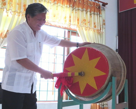Kết thúc buổi lễ, Bộ trưởng Hà Hùng Cường đã đánh hồi trống khai giảng lớp Trung cấp Luật chính quy đầu tiên trên quê hương Đại tướng và chụp ảnh lưu niệm với đại biểu dự lễ khai giảng cùng các học viên.
