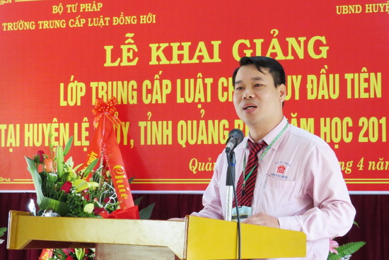 Tại Lễ khai giảng, Tiến sĩ Đỗ Đức Hồng Hà – Hiệu trưởng nhà trường cho biết: năm học này có ý nghĩa hết sức quan trọng đối với sự phát triển của nhà trường. Việc mở lớp tại Lệ Thủy có ý nghĩa to lớn với nhà trường trong công tác đào tạo cán bộ, công chức Tư pháp – Hộ tịch để đáp ứng được như cầu cải cách hành chính, cải cách Tư pháp và xây dựng Nhà nước pháp quyền XHCN. Lớp Trung cấp Luật chính quy đầu tiên này sẽ là điểm sáng, là mô hình mẫu để nhân rộng ở Quảng Bình và các tỉnh Bắc miền Trung.