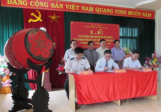 Sáng ngày 26/4, Lễ ký kết Chương trình phối hợp giữa Sở Tư pháp, Cục Thi hành án tỉnh Sơn La với Trường Trung cấp Luật Tây Bắc về đào tạo, bồi dưỡng cán bộ, công chức Tư pháp đã được tổ chức.Buổi Lễ vinh dự được đón tiếp PGS, TS. Hoàng Thế Liên – Thứ trưởng Bộ Tư pháp, các đồng chí lãnh đạo Vụ Tổ chức – Cán bộ, Vụ Pháp luật Hình sự - Hành chính; các đồng chí là lãnh đạo Sở Tư pháp và Cục Thi hành án dân sự tỉnh Sơn La.