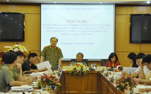 Tại Hội nghị, Bộ trưởng Hà Hùng Cường nhấn mạnh, các Bộ, ngành khối nội chính Trung ương có vị trí hết sức quan trọng trong bộ máy của Đảng và Nhà nước, luôn thực hiện tốt nhiệm vụ chính trị mà Đảng, Nhà nước và nhân dân giao phó. Công tác TĐKT 6 tháng đầu năm về cơ bản đồng bộ mặc dù phải đối phó với những khó khăn, thách thức lớn; trước nhiệm vụ chính trị đặt ra ngày càng lớn, nhất là nhiệm vụ triển khai thi hành Hiến pháp năm 2013, các Bộ, ngành đã hoàn thành nhiệm vụ chính trị được giao. Hội nghị sơ kết phong trào thi đua 6 tháng đầu năm kết hợp với việc triển khai thực hiện Chỉ thị 34-CT/TW nhằm quán triệt việc thực hiện Chỉ thị để tiến tới việc chuẩn bị cho Đại hội thi đua các cấp năm 2015 và Đại hội thi đua toàn quốc lần thứ 9. Với tinh thần đó, Hội nghị là diễn đàn quan trọng để các Bộ, ngành chia sẻ kết quả đã đạt được và học hỏi, rút kinh nghiệm để công tác TĐKT tiếp tục phát triển, hướng tới triển khai thực hiện Chỉ thị 34-CT/TW thực chất hơn, góp phần hoàn thành tốt nhiệm vụ chính trị của khối năm 2014 và những năm tiếp theo được tốt hơn, đóng góp cho sự nghiệp chung của đất nước. Năm 2014 là năm bản lề thực hiện Nghị quyết Đại hội XI của Đảng, ngoài nhiệm vụ thường xuyên còn có những nhiệm đột xuất đặt ra nhiều khó khăn thách thức.