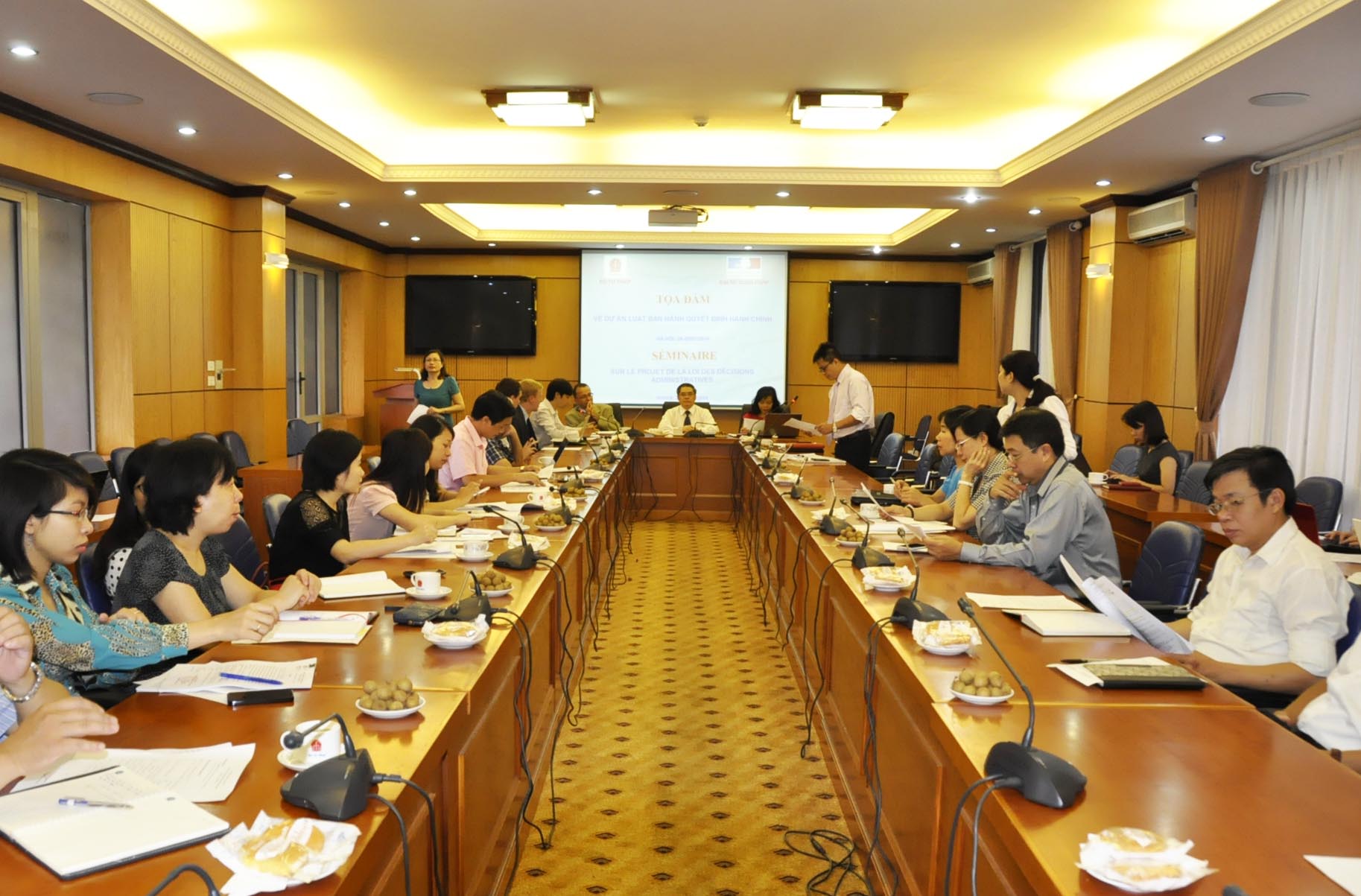 Phát biểu tại hội nghị, Thứ trưởng Đinh Trung Tụng nhấn mạnh tầm quan trọng của QĐHC trong bối cảnh hội nhập quốc tế sâu rộng và nhiệm vụ triển khai, thi hành Hiến pháp năm 2013. Trong quá trình quản lý hành chính, các cơ quan công quyền phải ban hành số lượng lớn các QĐHC, do đó, phải có cơ chế kiểm soát quá trình ban hành, nhằm bảo đảm công khai, minh bạch của các QĐHC, tránh gây ra sự tùy tiện từ phía cơ quan quản lý nhà nước. Như vậy, việc xây dựng Luật Ban hành QĐHC nhằm tạo ra cơ chế để các cơ quan, tổ chức, cá nhân kiểm soát tính hợp hiến, hợp pháp, khả thi của QĐHC; bảo đảm quyền và lợi ích hợp pháp của các tổ chức, cá nhân trong quá trình ban hành QĐHC; nâng cao tính minh bạch, hiệu quả trong hoạt động của các cơ quan nhà nước. Thứ trưởng cho rằng, nền hành chính của Cộng hòa Pháp là một nền hành chính khoa học, mẫu mực, do đó, cần tham khảo, học hỏi kinh nghiệm, chọn lọc và áp dụng một cách sáng tạo, phù hợp với điều kiện, hoàn cảnh của Việt Nam.