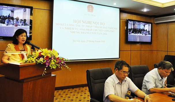 Tại Hội nghị, Thứ trưởng Nguyễn Thúy Hiền đã điểm lại tình hình triển khai nhiệm vụ trọng tâm trong 7 tháng đầu năm. Theo đó, công tác tư pháp đã được triển khai đầy đủ, cơ bản bám sát các nhóm nhiệm vụ trọng tâm đặt ra từ đầu năm. Tính đến hết tháng 8, các đơn vị thuộc Bộ Tư pháp đã hoàn thành 39/53 nhiệm vụ, đạt tỷ lệ 73,58%. Những tháng đầu năm, xác định triển khai thi hành Hiến pháp là một trong những nhiệm vụ, giải pháp chủ yếu chỉ đạo điều hành thực hiện Kế hoạch phát triển kinh tế xã hội năm 2014, Bộ Tư pháp đã phối hợp với Ban Tuyên giáo TƯ, Bộ Ngoại giao xây dựng tài liệu và thực hiện tuyên truyền, phổ biến Hiến pháp. Đối với từng lĩnh vực công tác của Bộ như xây dựng, thẩm định, kiểm tra văn bản quy phạm pháp luật, kiểm soát thủ tục hành chính, thi hành án dân sự, bổ trợ tư pháp, pháp luật quốc tế, hợp tác quốc tế, công tác cán bộ… đều có những chuyển biến và đạt được những kết quả tích cực.