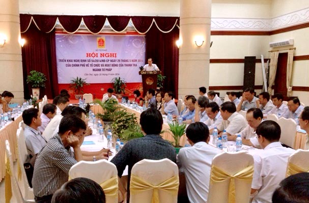 Ngày 23/9, tại thành phố Cần Thơ, Bộ Tư pháp đã tổ chức Hội nghị triển khai Nghị định số 54/2014/NĐ-CP ngày 29 tháng 5 năm 2014 của Chính phủ về tổ chức và hoạt động của thanh tra ngành Tư pháp cho công chức, viên chức các cơ quan Tư pháp địa phương tại khu vực phía Nam. Hội nghị có sự tham dự của Chánh Thanh tra tỉnh, thành phố, đại diện Lãnh đạo Sở, Thanh tra Sở Tư pháp các tỉnh, thành phố trực thuộc Trung ương khu vực phía Nam (từ Quảng Nam trở vào), đại diện Lãnh đạo, Thanh tra Sở Tư pháp tỉnh Ninh Bình, đại diện Lãnh đạo Cục Công tác phía Nam, Bộ Tư pháp.