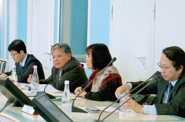 Trao đổi với người đứng đầu Bộ Tư pháp của Liên bang Nga, Bộ trưởng Hà Hùng Cường thông tin khái quát về những thành tựu phát triển kinh tế-xã hội nổi bật của Việt Nam trong những năm gần đây; việc Quốc hội, Chính phủ Việt Nam đang đẩy mạnh triển khai thi hành Hiến pháp mới với 3 trụ cột là kinh tế thị trường, mở rộng dân chủ và tiếp tục xây dựng Nhà nước pháp quyền. Trong lĩnh vực xây dựng pháp luật, với mục tiêu từ nay đến năm 2016 phải cơ bản xây dựng xong hệ thống pháp luật để từ năm 2016 trở đi tập trung vào việc hoàn thiện pháp luật và tổ chức thực thi pháp luật, Bộ Tư pháp Việt Nam được giao trọng trách lớn trong việc phối hợp với các bộ, ngành, địa phương rà soát toàn bộ hệ thống pháp luật, trên cơ sở đó đề xuất sửa đổi, bổ sung hoặc ban hành mới các văn bản pháp luật bảo đảm phù hợp với quy định của Hiến pháp và chủ trì xây dựng một số dự án bộ luật, luật quan trọng như Bộ luật dân dự (sửa đổi), Bộ luật hình sự (sửa đổi) và Luật ban hành văn bản pháp luật… Trong đó, việc nghiên cứu kinh nghiệm của Liên bang Nga trong xây dựng Bộ luật dân dự (sửa đổi), Bộ luật hình sự (sửa đổi) cần được coi là 2 trong số 5 nội dung ưu tiên hợp tác giữa 2 Bộ trong thời gian tới. Bên cạnh hợp tác trong lĩnh vực xây dựng pháp luật, việc hợp tác, trao đổi kinh nghiệm trong quản lý các nghề tư pháp cũng cần tiếp tục ưu tiên, trước mắt là lĩnh vực Thừa phát lại. Hiện nay, thực hiện Nghị quyết của Quốc hội, Bộ Tư pháp Việt Nam đang thúc đẩy triển khai thí điểm chế định này và dự kiến sẽ tổng kết, báo cáo Quốc hội kết quả thí điểm vào năm 2015, trên cơ sở đó sẽ đề xuất hoàn thiện thể chế ở tầm luật đối với lĩnh vực này. Hai lĩnh vực cần ưu tiên hợp tác còn lại là trợ giúp pháp lý và công tác đào tạo cán bộ pháp luật, đào tạo các chức danh tư pháp, trong đó đào tạo về pháp luật quốc tế được Bộ trưởng Hà Hùng Cường hết sức quan tâm và mong rằng trong thời gian tới Bộ Tư pháp Liên bang Nga sẽ hỗ trợ tốt công tác này.