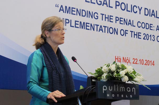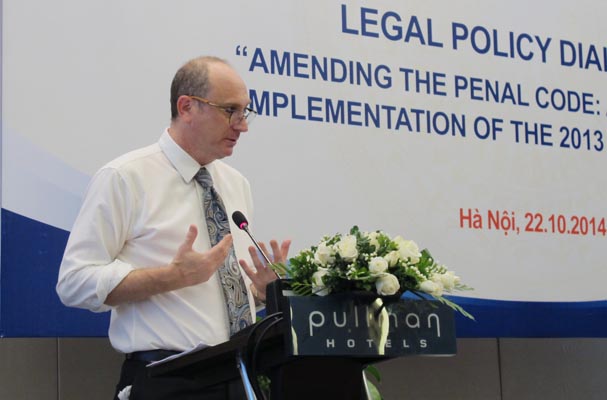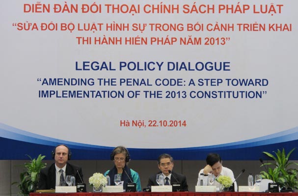 Sáng nay 22/10, Bộ Tư pháp phối hợp với Chương trình Phát triển Liên hợp quốc (UNDP) tổ chức diễn đàn đối thoại chính sách pháp luật lần thứ hai năm 2014 với chủ đề “Sửa đổi, bổ sung Bộ luật Hình sự trong bối cảnh triển khai thi hành Hiến pháp 2013”. Diễn đàn có sự tham gia của đại diện các Ủy ban liên quan của Quốc hội, Bộ Tư pháp, các tổ chức xã hội và chương trình phát triển Liên hợp quốc tại Việt Nam. Thứ trưởng Bộ Tư pháp Đinh Trung Tụng và Giám đốc quốc gia Chương trình Phát triển Liên hợp quốc Louise Chamberlain tại Việt Nam đồng chủ trì Diễn đàn.