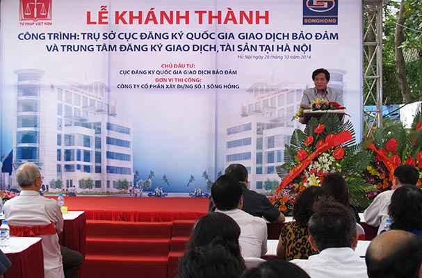 Tại buổi lễ khánh thành, Thứ trưởng Bộ Tư Pháp Nguyễn Khánh Ngọc chúc mừng toàn thể cán bộ, công chức, viên chức của Cục Đăng ký quốc gia giao dịch bảo đảm và Trung tâm Đăng ký giao dịch, tải sản tại Hà Nội đã có trụ sở làm việc mới hiện đại, khang trang, rộng rãi. Thứ trưởng cho biết: “Việc đưa vào sử dụng công trình Trụ sở Cục Đăng ký quốc gia giao dịch bảo đảm và Trung tâm Đăng ký giao dịch, tài sản tại Hà Nội thể hiện sự quan tâm của Đảng, Nhà Nước, Bộ Tư pháp cũng như cấp ủy, chính quyền thành phố Hà Nội đối với công tác tư pháp nói chung và sự phát triển của công tác đăng ký giao dịch bảo đảm nói riêng”. Với địa điểm làm việc mới và hiện đại, Lãnh đạo Bộ Tư pháp hi vọng, tập thể Lãnh đạo và toàn bộ cán bộ, công chức, viên chức của Cục Đăng ký quốc gia giao dịch bảo đảm và Trung tâm Đăng ký giao dịch, tài sản tại Hà Nội sẽ hoàn thành tốt hơn nhiệm vụ được giao./.