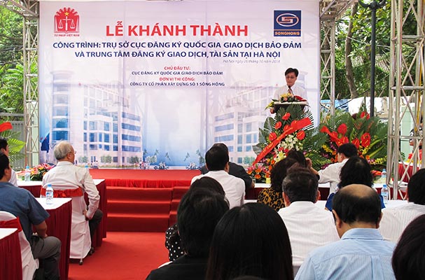 Công trình trụ sở Cục Đăng ký quốc gia giao dịch bảo đảm và Trung tâm Đăng ký giao dịch, tài sản tại Hà Nội chính thức đi vào hoạt động.Sáng nay (26/10), Công trình trụ sở Cục Đăng ký quốc gia giao dịch bảo đảm và trung tâm đăng ký giao dịch, tài sản tại Hà Nội đã chính thức đi vào hoạt động. Tới dự lễ khánh thành công trình có Bộ trưởng Bộ Tư pháp Hà Hùng Cường, các Thứ trưởng Bộ Tư pháp Nguyễn Thúy Hiền, Nguyễn Khánh Ngọc, Phan Chí Hiếu, nguyên Thứ trưởng Bộ Tư pháp Phạm Quý Tỵ cùng đại diện Lãnh đạo các đơn vị thuộc bộ và các ban, ngành có liên quan. >Công trình trụ sở Cục Đăng ký quốc gia giao dịch bảo đảm và Trung tâm Đăng ký giao dịch, tài sản tại Hà Nội tọa lạc tại Nam Từ Liêm với diện tích sử dụng là 1.016m2, diện tích xây dựng là 385,7m2, quy mô trụ sở gồm 7 tầng với đầy đủ tiện nghi, đảm bảo an toàn sử dụng khai thác và vận hành, đạt tiêu chuẩn, chất lượng của công trình xây dựng. Tổng mức đầu tư cho công trình xấp xỉ 38 tỷ đồng, lấy nguồn vốn đầu tư từ ngân sách nhà nước cho xây dựng cơ bản bổ sung từ nguồn kinh phí của quỹ phát triển hoạt động sự nghiệp của các Trung tâm Đăng ký giao dịch bảo đảm.Tại buổi lễ khánh thành, Thứ trưởng Bộ Tư Pháp Nguyễn Khánh Ngọc chúc mừng toàn thể cán bộ, công chức, viên chức của Cục Đăng ký quốc gia giao dịch bảo đảm và Trung tâm Đăng ký giao dịch, tải sản tại Hà Nội đã có trụ sở làm việc mới hiện đại, khang trang, rộng rãi. Thứ trưởng cho biết: “Việc đưa vào sử dụng công trình Trụ sở Cục Đăng ký quốc gia giao dịch bảo đảm và Trung tâm Đăng ký giao dịch, tài sản tại Hà Nội thể hiện sự quan tâm của Đảng, Nhà Nước, Bộ Tư pháp cũng như cấp ủy, chính quyền thành phố Hà Nội đối với công tác tư pháp nói chung và sự phát triển của công tác đăng ký giao dịch bảo đảm nói riêng”. Với địa điểm làm việc mới và hiện đại, Lãnh đạo Bộ Tư pháp hi vọng, tập thể Lãnh đạo và toàn bộ cán bộ, công chức, viên chức của Cục Đăng ký quốc gia giao dịch bảo đảm và Trung tâm Đăng ký giao dịch, tài sản tại Hà Nội sẽ hoàn thành tốt hơn nhiệm vụ được giao./.