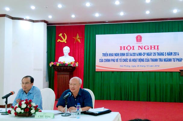 Ngày 28 tháng 10 năm 2014, tại thành phố Hải Phòng, Bộ Tư pháp đã tổ chức Hội nghị triển khai Nghị định số 54/2014/NĐ-CP ngày 29 tháng 5 năm 2014 của Chính phủ về tổ chức và hoạt động của thanh tra ngành Tư pháp cho công chức, viên chức các cơ quan Tư pháp địa phương khu vực phía Bắc.