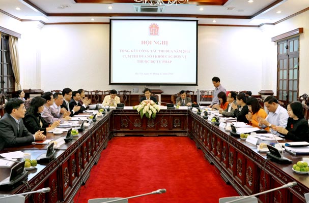 Các đại biểu tham dự Hội nghị đã được nghe tóm tắt Báo cáo tổng kết công tác thi đua khen thưởng năm 2014, phương hướng, nhiệm vụ công tác thi đua, khen thưởng năm 2015. Theo đó, các lĩnh vực thuộc Cụm như: Văn phòng, Tổ chức cán bộ, Kế hoạch - Tài chính, Các vấn đề chung về xây dựng pháp luật, Hơp tác quốc tế, Pháp luật quốc tế, Hình sự - Hành chính, Dân sự - Kinh tế, Phổ biến, giáo dục pháp luật, Thi đua - Khen thưởng đều bám sát và triển khai hiệu quả các nhiệm vụ trọng tâm đề ra.