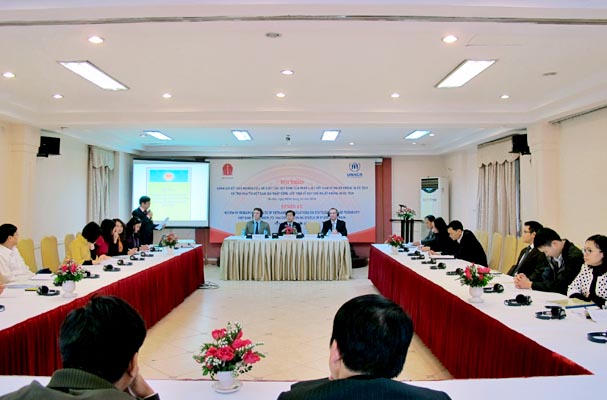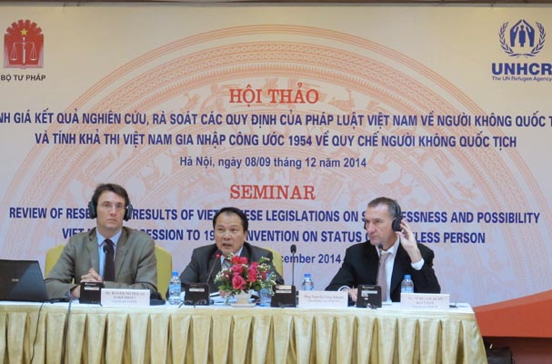 Sáng nay (08/12), Bộ Tư pháp và UNHCR đã tổ chức Hội thảo đánh giá kết quả nghiên cứu, rà soát các quy định của pháp luật Việt Nam về người không quốc tịch và khả năng Việt Nam gia nhập công ước 1954 về quy chế người không quốc tịch. Hội thảo có sự tham dự của đại diện các Bộ, ngành có liên quan, một số các Sở Tư pháp, các chuyên gia của UNHCR.
