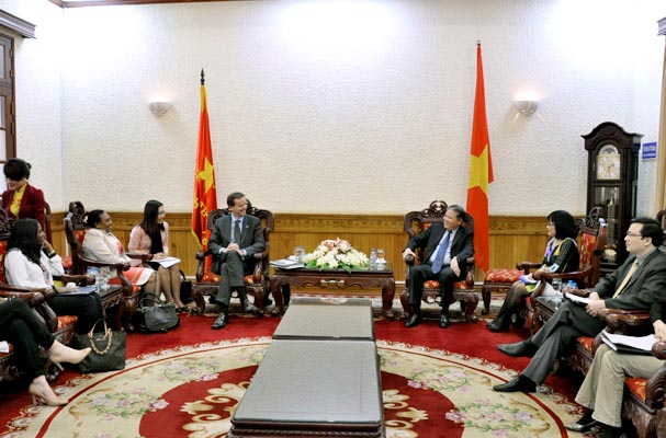 Trao đổi tại buổi tiếp, Bộ trưởng bày tỏ vui mừng được gặp Ban Điều hành UN Women và đánh giá cao sự hỗ trợ hiệu quả của UN Women đối với Chính phủ, nhân dân Việt Nam nói chung, với Bộ Tư pháp nói riêng. Khẳng định rằng, với lịch sử hợp tác lâu dài và tin tưởng lẫn nhau giữa Việt Nam và Liên hợp quốc, UN Women - cơ quan chủ chốt của Liên hợp quốc trong lĩnh vực bảo vệ quyền của phụ nữ và vì bình đẳng giới, đã và đang đồng hành, hỗ trợ Bộ Tư pháp, các cơ quan pháp luật và tư pháp của Việt Nam trong công cuộc cải cách pháp luật và tư pháp từ gần hai thập kỷ nay. Đánh giá cao vai trò của UN Women với nhiều năm kinh nghiệm hợp tác cùng Chính phủ Việt Nam, có hiểu biết sâu sắc về các vấn đề phụ nữ ở Việt Nam, đã hỗ trợ Việt Nam hoàn thiện khung pháp luật, chính sách về bình đẳng giới với rất nhiều đạo luật quan trọng như: Luật bình đẳng giới, Luật phòng, chống bạo lực gia đình và nhiều luật khác có liên quan; nâng cao năng lực cho các cán bộ thi hành pháp luật và cán bộ tư pháp về hoàn thiện luật pháp, chính sách cũng như lồng ghép giới trong hoạt động xây dựng pháp luật.