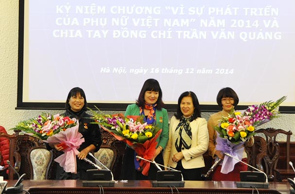 Tại Hội nghị, Thứ trưởng Nguyễn Thúy Hiền đã trao Kỷ niệm chương “Vì sự phát triển của Phụ nữ Việt Nam” cho các cá nhân có nhiều đóng góp cho sự phát triển chung của Ban VSTBPN và của Bộ, ngành” và chia tay đồng chí Trần Văn Quảng, nguyên Vụ trưởng Vụ Tổ chức cán bộ, Phó trưởng Ban VSTBPN ngành Tư pháp. Thứ trưởng khẳng định, đồng chí Quảng và các đồng chí được trao Kỷ niệm chương đã có nhiều đóng góp cho sự phát triển của Ban và sự phát triển chung của Bộ, ngành Tư pháp. Ban VSTBPN của ngành ngày càng trưởng thành, hoạt động bài bản, nề nếp, ngày càng nhiều cán bộ nữ nắm giữ những vị trí quan trọng. Ban không chỉ hoạt động trong phạm vi hẹp mà còn tham gia vào công tác xây dựng thể chế, nhất là Thông tư 17/2014/TT-BTP quy định về lồng ghép vấn đề bình đẳng giới trong trong xây dựng văn bản quy phạm pháp luật. Thứ trưởng nhấn mạnh, lần đầu tiên có được thông tư về lồng ghép giới, đây là bộ công cụ đắc lực để thực hiện công tác bình đẳng giới trong xây dựng văn bản pháp luật, có được bộ công cụ này là do có sự đóng góp lớn của đồng chí Quảng và các thành viên của Ban.