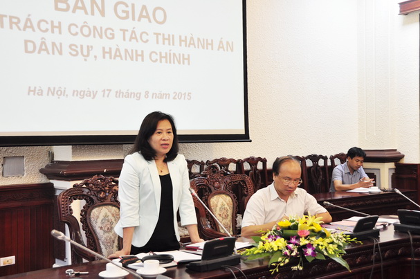 Phát biểu tại buổi bàn giao, Phó Chánh án TANDTC Nguyễn Thúy Hiền ghi nhận những nỗ lực, cố gắng của hệ thống THADS trong thời gian quan, đồng thời nhấn mạnh một số vấn đề cần tiếp tục chú ý trong thời gian tới như công tác xây dựng thể chế, hướng dẫn nghiệp vụ, công tác cán bộ và đào tạo bồi dưỡng… Đồng chí cũng tin tưởng rằng với bản lĩnh, trí tuệ của mình, Thứ trưởng Phan Chí Hiếu sẽ hoàn thành xuất sắc nhiệm vụ phụ trách công tác này.
