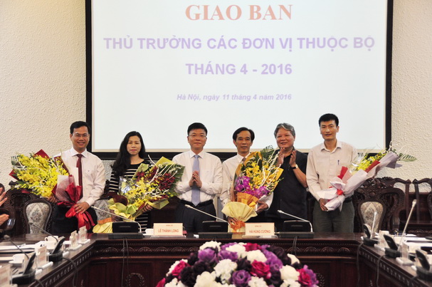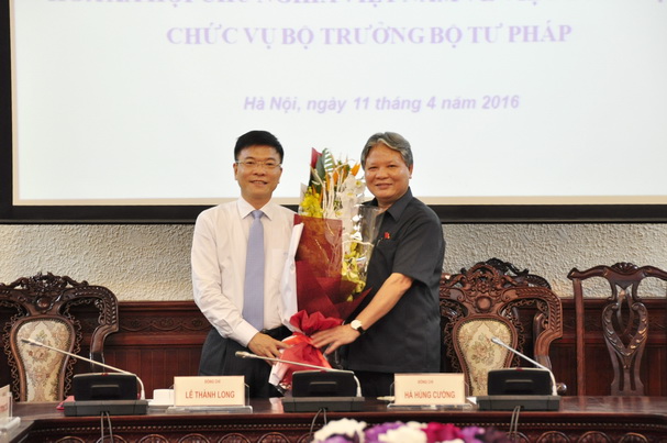 Tại cuộc họp giao ban Thủ trưởng các đơn vị thuộc Bộ được tổ chức chiều 11/4, Bộ Tư pháp đã chúc mừng đồng chí Lê Thành Long, Ủy viên Ban Chấp hành Trung ương Đảng vừa được Quốc hội phê chuẩn chức vụ Bộ trưởng Bộ Tư pháp. Nguyên Bộ trưởng Hà Hùng Cường, Đảng ủy, Công đoàn, Đoàn Thanh niên Bộ Tư pháp cùng chúc mừng đồng chí Tân Bộ trưởng.