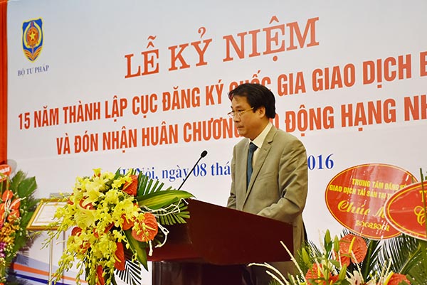 Ghi nhận và biểu dương quá trình xây dựng và phát triển của Cục, Thứ trưởng Nguyễn Khánh Ngọc khẳng định, công tác đăng ký giao dịch bảo đảm đã từng bước khẳng định được vị trí quan trọng, không thể thiếu được của mình trong phát triển kinh tế - xã hội và việc đón nhận Huân chương Lao động hạng Nhì là sự đánh giá cao của Đảng, Nhà nước đối với những đóng góp của Cục. Trong không khí trang trọng, Thứ trưởng nhắc nhở không thể quên những người đã đặt nền móng cho công tác này và chia sẻ những băn khoăn, trăn trở về những thách thức phía trước. Từ đó, Thứ trưởng đề nghị Cục chủ động, sáng tạo thực hiện chức năng, nhiệm vụ được giao, nghiên cứu định hướng phát triển của Cục trong 10 năm tới để tạo dựng được thương hiệu, hình ảnh của Cục.