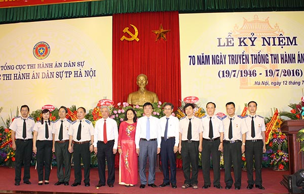 Sáng 12/7, Cục Thi hành án dân sự Hà Nội đã long trọng tổ chức Lễ kỷ niệm 70 năm Ngày truyền thống Thi hành án dân sự (19/7/1946 - 19/7/2016). Ủy viên BCH Trung ương Đảng, Bộ trưởng Bộ Tư pháp Lê Thành Long, Tổng cục trưởng Hoàng Sỹ Thành, Phó Chủ tịch UBND TP Hà Nội Lê Hồng Sơn cũng nhiều đại diện các cơ quan, ban ngành của TP, các cán bộ, chấp hành viên cơ quan Thi hành án dân sự đã tham dự buổi lễ.