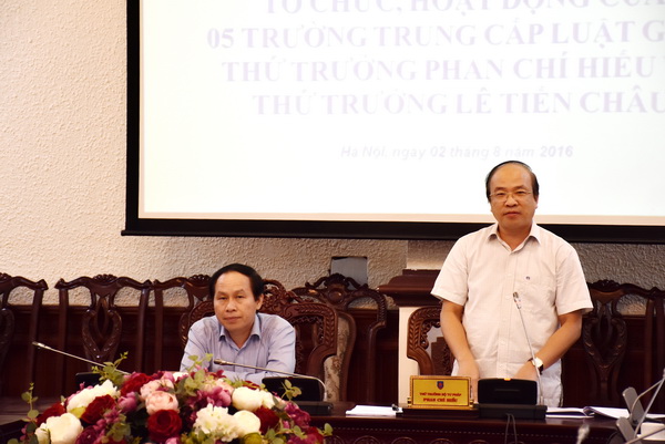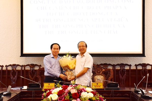 Chiều 2/8, Thứ trưởng Bộ Tư pháp Phan Chí Hiếu đã bàn giao công tác quản lý, chỉ đạo, điều hành lĩnh vực đào tạo, bồi dưỡng công chức, viên chức Bộ Tư pháp và tổ chức, hoạt động của 5 Trường Trung cấp (TC) Luật cho Thứ trưởng Lê Tiến Châu. Tham gia lễ bàn giao có đại diện lãnh đạo một số đơn vị thuộc Bộ.