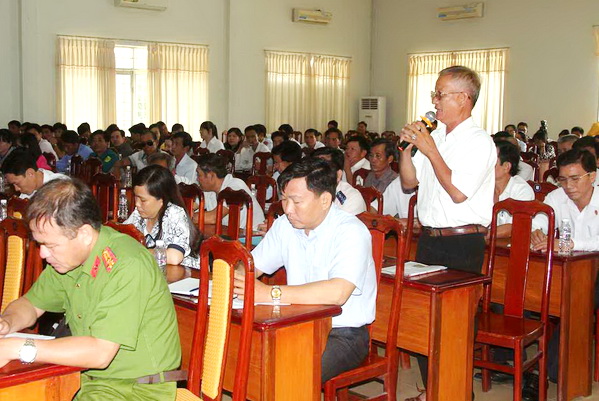 Trong phần đóng góp ý kiến, cử tri Nguyễn Chí Viễn (khu phố 3, thị trấn An Minh, huyện An Minh) mong muốn các vị ĐBQH đề xuất địa phương nâng cấp sửa chữa tuyến tỉnh lộ 967 (nối liền 2 huyện An Biên - An Minh) đoạn đi qua thị trấn An Minh, huyện An Minh để đảm bảo việc lưu thông. Cử tri Phạm Hữu Điền (khu phố 3 thị trấn An Minh) mong muốn trước tác động của biến đổi khí hậu (BĐKH) hạn mặn ngày càng gay gắt, Nhà nước sớm có định hướng chuyển đổi cơ cấu cây trồng vật nuôi cho phù hợp đảm bảo đời sống cho bà con nông dân, xem xét vấn đề xuất chuyển đổi cơ cấu trồng lúa sang nuôi tôm ở vùng bị miễn mặn để người dân có điều kiện phát triển kinh tế. Ngoài ra, ông Điền còn đề nghị các các ĐBQH có kiến nghị xử lý công tác vệ sinh môi trường, hỗ trợ kinh phí đưa lưới điện đến phục vụ sinh hoạt cho người dân các ấp trên địa bàn.