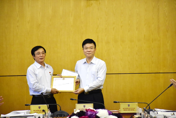 Sáng 8/9, tại cuộc họp giao ban lãnh đạo cấp Vụ tháng 9/2016, Bộ trưởng Lê Thành Long đã trao Quyết định nghỉ hưu và Kỷ niệm chương Vì sự nghiệp xây dựng tổ chức Công đoàn cho đồng chí Nguyễn Bá Yên, Chánh Văn phòng Đảng – Đoàn thể.