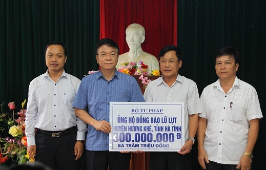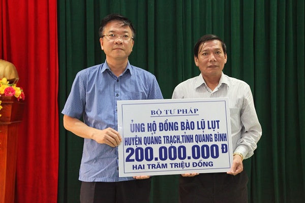 Hưởng ứng lời kêu gọi của Chính phủ, hướng về đồng bào miền Trung bị lũ lụt, ngày 30/10, đoàn công tác của Bộ Tư pháp đã về vùng rốn lũ trao quà cứu trợ tại một số địa phương của tỉnh Hà Tĩnh và Quảng Bình.