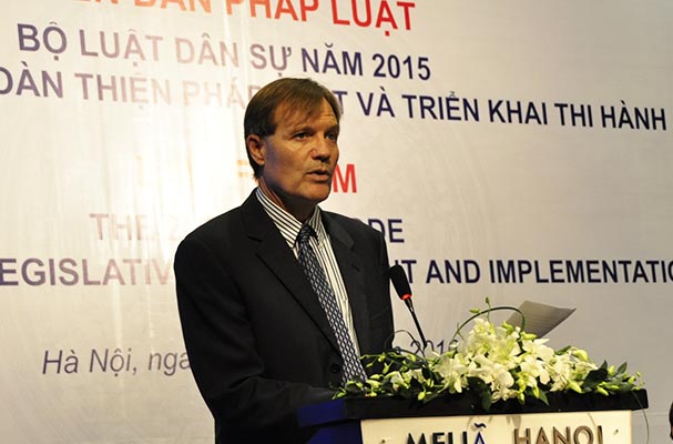 Sáng nay (14/12), với sự hỗ trợ của Cơ quan Phát triển Quốc tế Hoa Kỳ (USAID), Bộ Tư pháp đã tổ chức diễn đàn Bộ luật dân sự năm 2015 – các giải pháp hoàn thiện pháp luật và triển khai thi hành. Thứ trưởng Nguyễn Khánh Ngọc; ông Mike Greene, Giám đốc Quốc gia, USAID; bà Akiko Fujii, Phó Giám đốc Quốc gia, UNDP Việt Nam đồng chủ trì Diễn đàn. Tham dự Diễn đàn có chuyên gia Đinh Trung Tụng, nguyên Thứ trưởng Bộ Tư pháp, bà Đặng Hoàng Oanh, Vụ trưởng Vụ hợp tác quốc tế và ông Nguyễn Thanh Tú, Vụ trưởng Vụ Pháp luật dân sự - kinh tế.