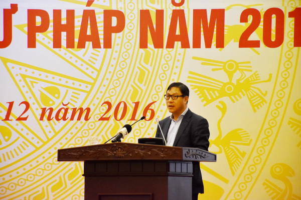 Phát biểu tại Hội nghị, Thủ tướng Chính phủ Nguyễn Xuân Phúc khẳng định, công tác tư pháp liên quan đến người dân và những gì liên quan đến người dân là vô cùng quan trọng. Trong suốt năm 2016, Bộ, ngành Tư pháp đã chỉ đạo, tập trung xây dựng thể chế - đây là lĩnh vực quan trọng đối với sự phát triển của đất nước, do đó, Bộ đã nỗ lực cao trong xây dựng, thẩm định văn bản nhằm bảo vệ tốt hơn quyền và lợi ích của người dân và doanh nghiệp, tạo điều kiện cho đầu tư kinh doanh và khởi nghiệp.