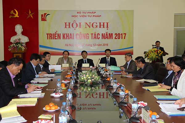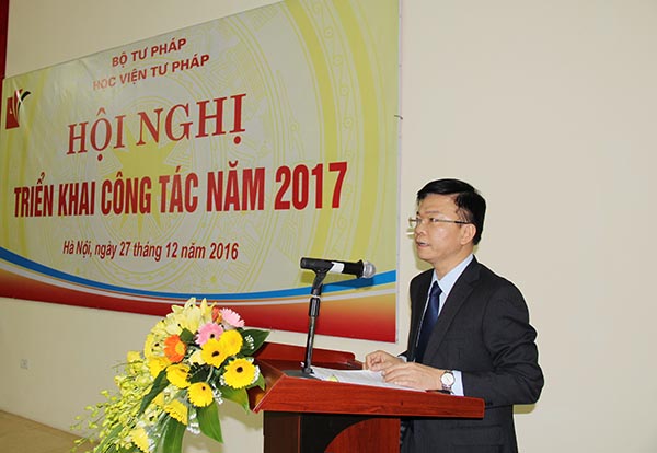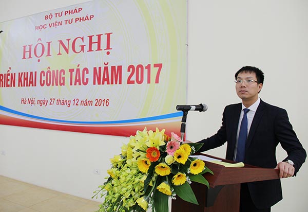 Báo cáo về tình hình thực hiện nhiệm vụ năm 2006 và phương hướng, nhiệm vụ trọng tâm năm 2017 của Học viện, Quyền Giám đốc Học viện Tư pháp Đoàn Trung Kiên cho biết, năm 2016, Học viện Tư pháp đã đạt được nhiều kết quả tích cực, đáng khích lệ trong thực hiện nhiệm vụ, nhất là về công tác đào tạo, bồi dưỡng, tài chính, đầu tư xây dựng cơ sở vật chất, trụ sở và các hoạt động phong trào, đoàn thể... Nhiều nhiệm vụ đã về đích sớm, với chất lượng và hiệu quả cao. Công tác chỉ đạo, điều hành quản lý có nhiều khởi sắc.