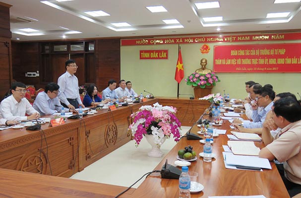 Ngày 13/9, Đoàn công tác do đồng chí Lê Thành Long, Ủy viên BCH Trung ương Đảng, Bộ trưởng Bộ Tư pháp đã làm việc với Thường trực Tỉnh ủy, UBND Đắk Lắk. Buổi làm việc có sự tham gia của ông Phạm Ngọc Nghị Chủ tịch UBND tỉnh cùng đại diện Thường trực Tỉnh ủy; đại diện các Sở, ban ngành chức năng của tỉnh Đắk Lắk.