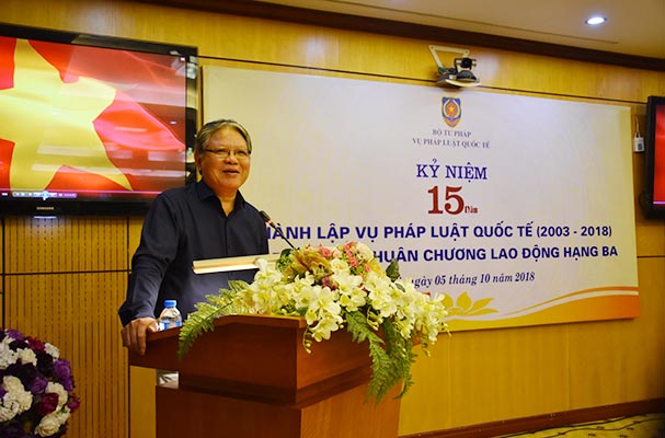 Chiều 5/10, Bộ Tư pháp tổ chức Lễ kỷ niệm 15 năm thành lập Vụ Pháp luật quốc tế (2003 - 2018) và đón nhận Huân chương Lao động hạng Ba.
