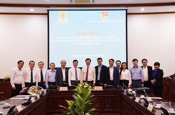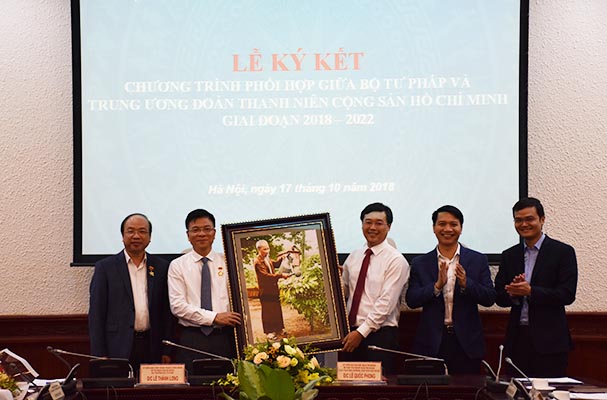 Nhằm tạo cơ chế phối hợp hiệu quả và nâng cao trách nhiệm, phát huy vai trò của thanh niên, chiều 17/10, Bộ trưởng Bộ Tư pháp Lê Thành Long và Bí thư thứ nhất Ban chấp hành Trung ương Đoàn Lê Quốc Phong đã ký kết Chương trình phối hợp giữa Bộ Tư pháp và Trung ương Đoàn Thanh niên Cộng sản Hồ Chí Minh giai đoạn 2018 – 2022.