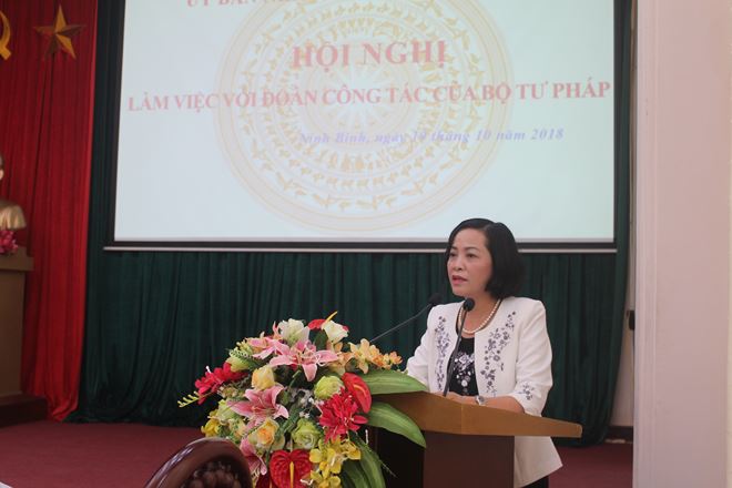 Đánh giá cao vị trí, vai trò quan trọng, không thể thiếu của Bộ, Ngành Tư pháp đối với đất nước thì tương tự tại địa phương, bà Thanh khẳng định, những kết quả đạt được như trên chính là nhờ một phần sự đóng góp hết sức thiết thực của công tác Tư pháp, THADS trên địa bàn. Nhân dịp này, bà Thanh cảm ơn sự quan tâm của Lãnh đạo Bộ Tư pháp đối với tỉnh Ninh Bình.