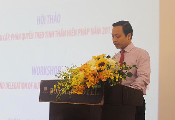 Phát biểu khai mạc Hội thảo, Thứ trưởng Bộ Tư pháp Trần Tiến Dũng nhận định việc phân cấp, phân quyền và ủy quyền như là một nguyên tắc trong tổ chức và hoạt động của Chính phủ và chính quyền địa phương. Việc phân cấp, phân quyền giữa trung ương và địa phương nhằm phát huy tính năng động, sáng tạo, quyền tự chủ, tự chịu trách nhiệm của địa phương; bảo đảm sự quản lý tập trung, thống nhất và thông suốt của chính quyền trung ương, nâng cao hiệu lực, hiệu quả quản lý nhà nước. Mặc dù vậy, cơ chế phân cấp, phân quyền, ủy quyền trong quản lý hành chính ở nước ta vẫn còn tồn tại nhiều hạn chế, bất cập, đặc biệt xuất phát từ sự chưa minh bạch, rõ ràng về nguyên tắc; thẩm quyền, trách nhiệm của các cấp chính quyền địa phương được phân định không rõ… Qua đó, Thứ trưởng Trần Tiến Dũng bày tỏ mong muốn Hội thảo này sẽ là dịp để các chuyên gia, nhà khoa học, đại diện các Bộ, ngành, địa phương đánh giá lại nguyên tắc phân cấp, phân quyền, ủy quyền được cụ thể hóa trong các văn bản quy phạm pháp luật cũng như thực tiễn hoạt động quản lý nhà nước của các Bộ, ngành, địa phương; nghiên cứu kinh nghiệm quốc tế để từ đó đề xuất các nội dung hoàn thiện hệ thống pháp luật về phân cấp, phân quyền và ủy quyền ở Việt Nam.